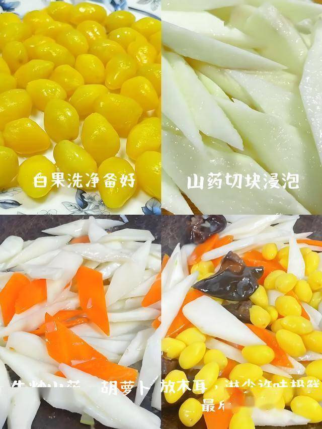推荐食谱:山药胡萝卜黑木耳炒白果