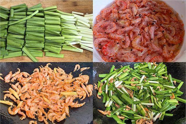 1. 准备:韭菜洗净,切成长段;准备一小碗虾皮,用清水稍微冲洗一下沥干。