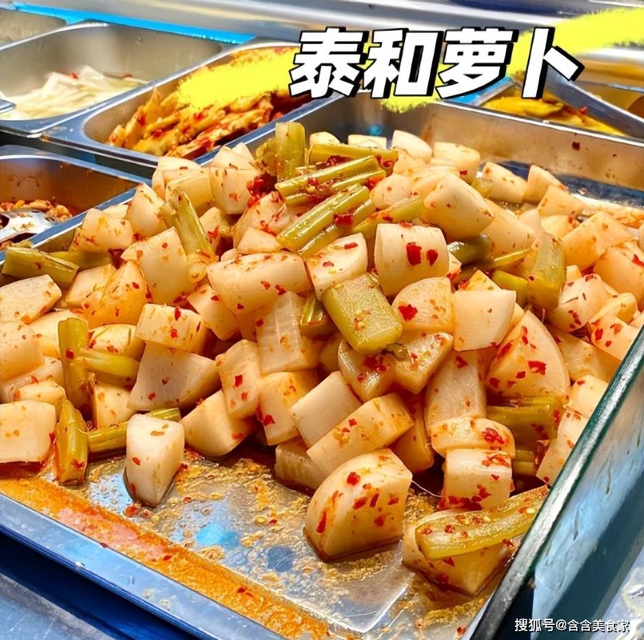 泰和萝卜是江西省吉安市泰和县的传统特色腌制凉菜,以本地白萝卜为主料,经切条、盐渍、调味、冷藏等工序制成。其口感酸甜微辣、清脆爽口,融合了甜、酸、辣、鲜、脆多种风味,尤以“酸甜打底、微辣点睛”为特色,并因加入甘草而带有回甘,具有开胃解腻、生津消食的功效。传统制作注重剁椒、甘草与糖醋汁的配比,冷藏腌制12小时以上,3天左右风味最佳。泰和萝卜不仅是当地饮食名片,也承载着地方文化记忆,常作为餐前小菜或休闲零食,与油腻菜肴搭配尤为受欢迎。街头尤以泰和红绿灯口老婆婆售卖的酸萝卜广受当地人推崇,被视为“童年味道。