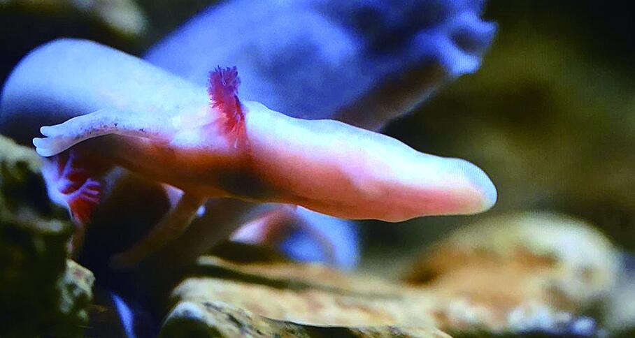 继续向前走,看见一个硕大的灯箱,图文并茂地介绍山洞里一种叫盲螈的动物,是蝾螈的一种,因为它长期生长在黑暗的环境里,所以眼睛退化了,故称为盲螈。科学家从研究盲螈开始,发起了近代洞穴探险运动,时间在17世纪。