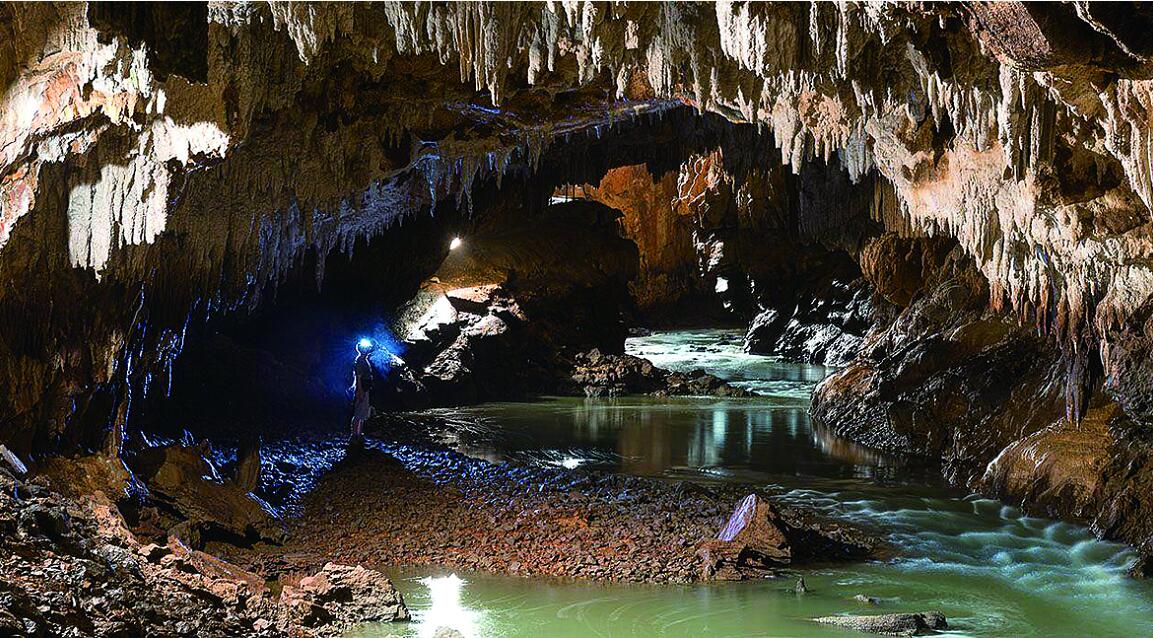 震撼之一是溶洞之大,连绵不断足足有二十四公里。洞中套洞,有隧道相连,形成曲折幽深的山洞长廊与大大小小几十个洞厅,最大的洞厅可容纳千人。洞内小铁路上奔驶着电动游览小火车,把游客送到最精彩的地方。然后让游客步行游览1.7公里的上下穿插的斜坡,仔细观赏那些最精彩的自然界杰作——千变万化的钟乳石。