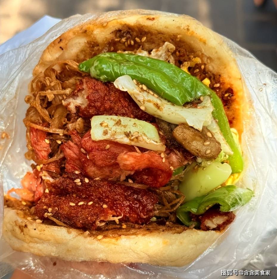 济宁夹饼以“万物皆可夹”著称,常见馅料包括炸里脊、鸡/羊肉串、鱼排、鸡蛋、豆腐皮、土豆丝等,搭配甜面酱、辣椒酱、孜然和芝麻,口感丰富,兼具烧烤风味。饼皮软弹酥香,内馅丰盛到常无法合拢,肉量十足,有“在肉里找土豆丝”的夸张说法,性价比极高。不仅是本地人日常主食,也成为游子乡愁的寄托,街边老店最受欢迎,虽无统一标准,但普遍认为楼下小摊的味道就已足够惊艳。