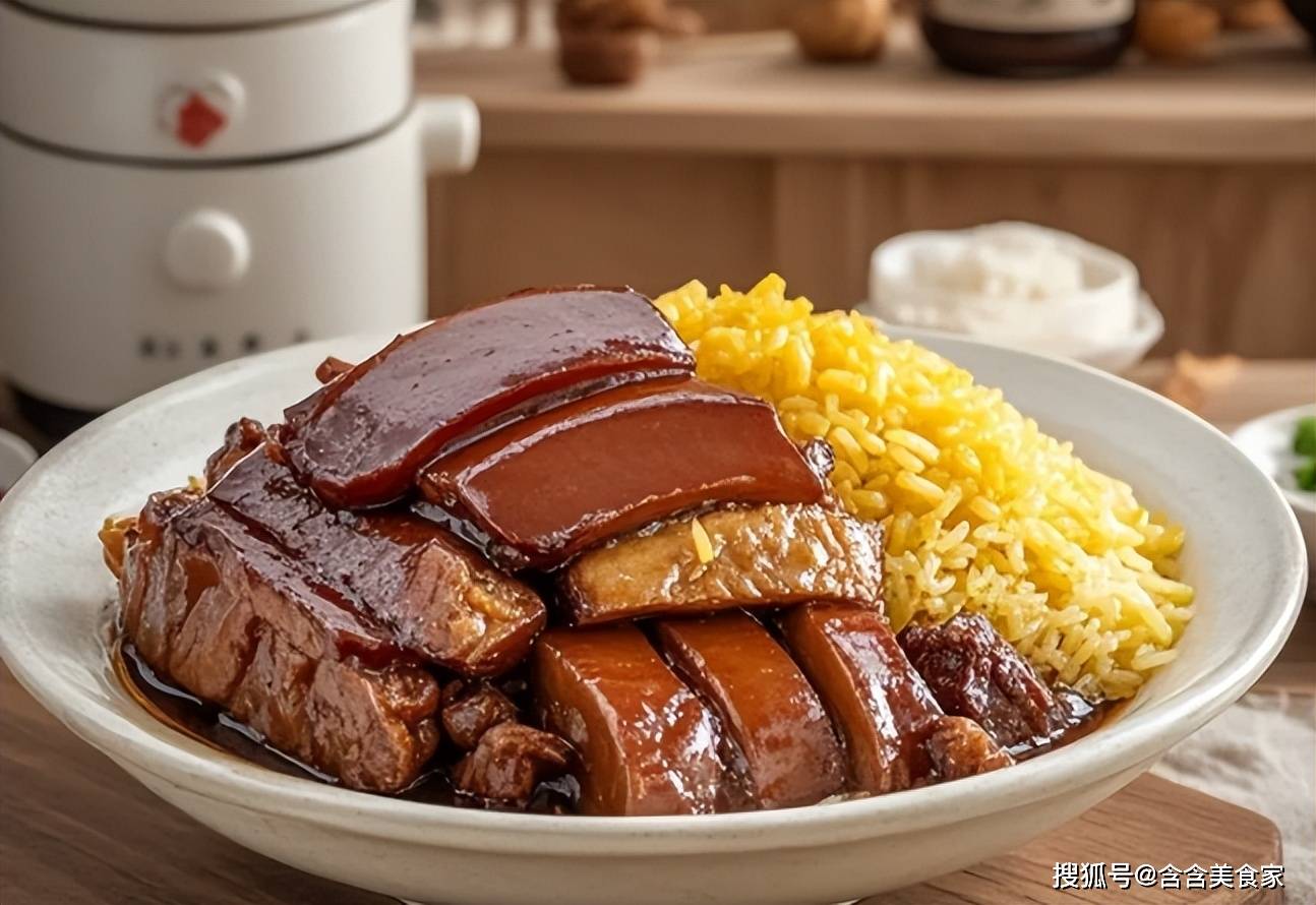 甏肉干饭是山东济宁的传统名吃,起源于京杭大运河漕运时期,因使用陶甏(bèng)炖肉而得名。其核心特点是选用肥瘦相间的五花肉,经焯水、炒糖色、慢炖等工序,肉质软烂入味、肥而不腻,搭配吸饱肉汁的干饭,香气浓郁,十分下饭。常见配菜包括卷煎、面筋、海带结、卤蛋、虎皮青椒等,荤素搭配,口感丰富。