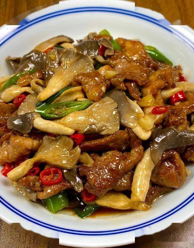 所需食材:蘑菇、猪肉、青椒、葱、姜、蒜、生抽、盐、料酒、食用油。
