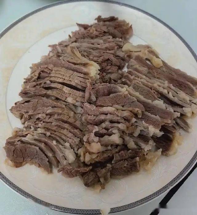4. 切片与蘸料:完全冷却的牛肉捞出,用保鲜膜紧紧包裹定型,放入冰箱冷藏2小时后再切,会非常容易切成薄片。调一个你喜欢的蘸料,比如蒜蓉生抽碟,就可以上桌了。最大程度保留了牛肉的原汁原味,鲜美无比!