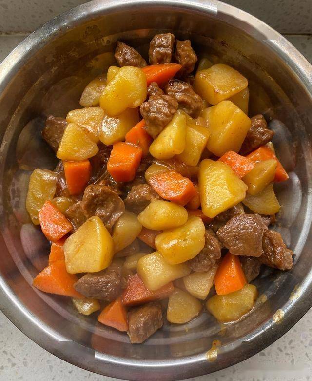 1、胡萝卜切滚刀块煮5分钟,土豆切块煮3分钟(先煮胡萝卜!它比土豆难熟~)