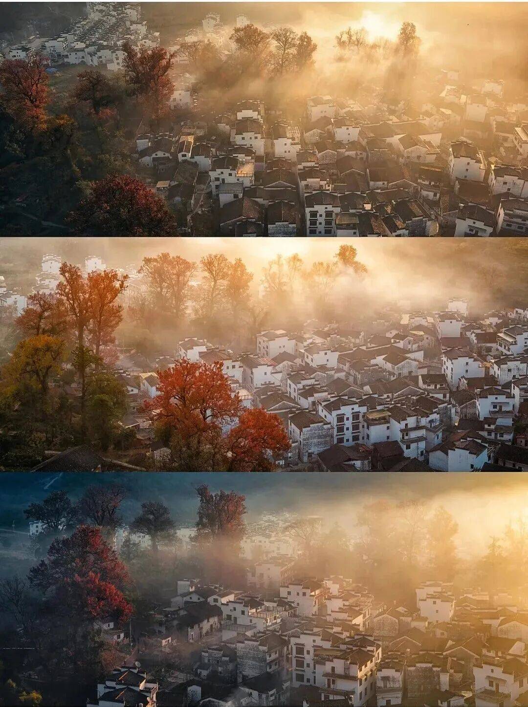 - 徽派古民居白墙黛瓦掩映于红叶之间,马头墙在晨光中勾勒出诗意轮廓,构成摄影爱好者心中的“中国最美秋景之一”。