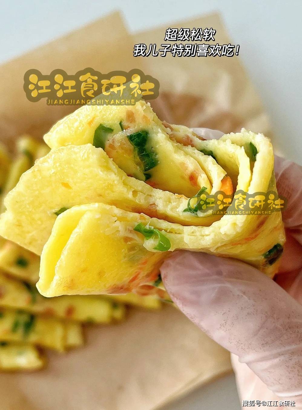 这个饼软嫩好嚼,带着葱香和胡萝卜的甜味,搭配一碗小米粥,就是完美的一餐。