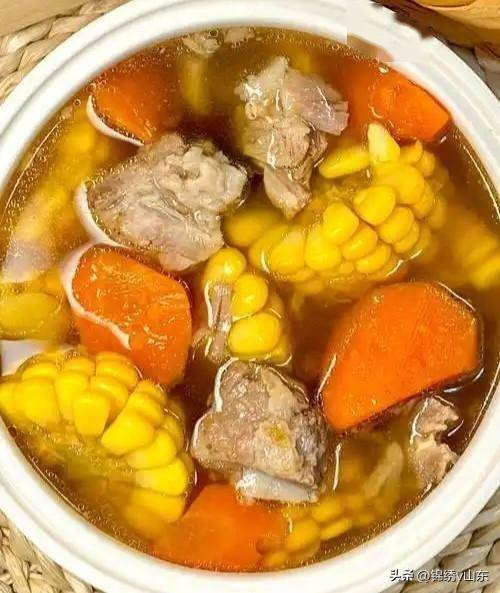 3. 加盐调味,再煲30分钟让味道融合。这道汤简单又营养,玉米的甜和胡萝卜的香,让大骨汤更鲜美,全家老少都爱喝!