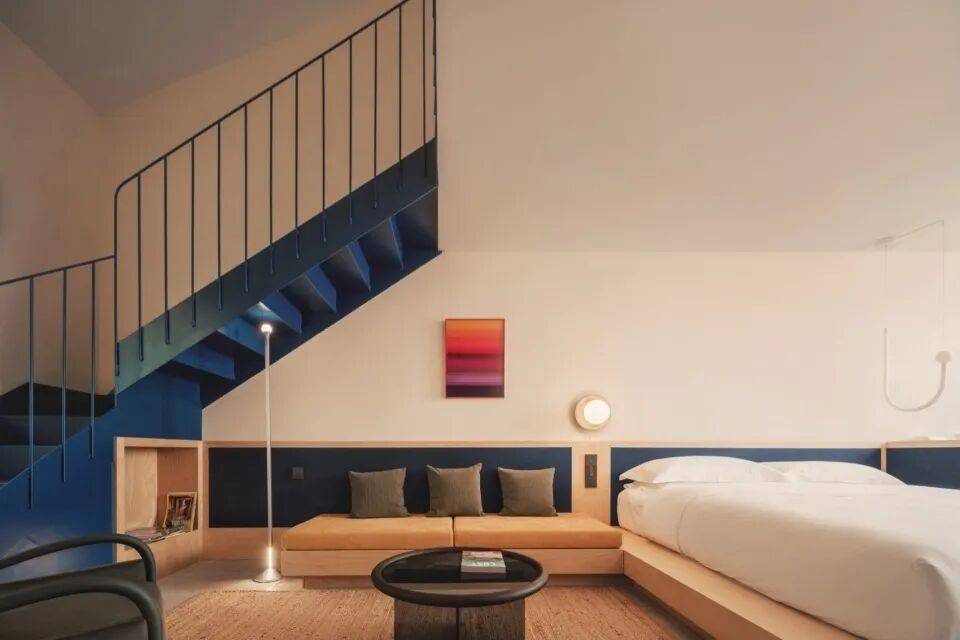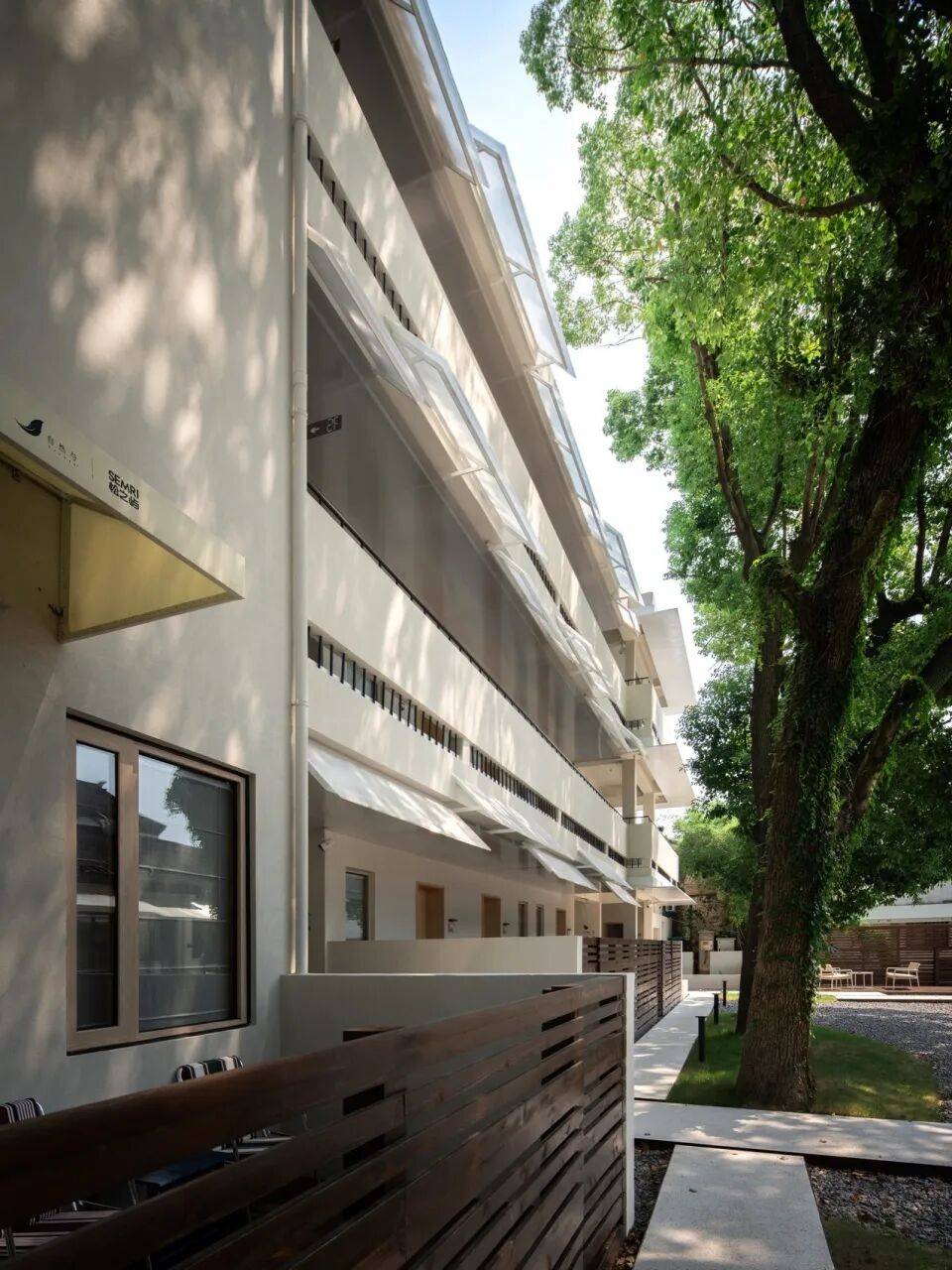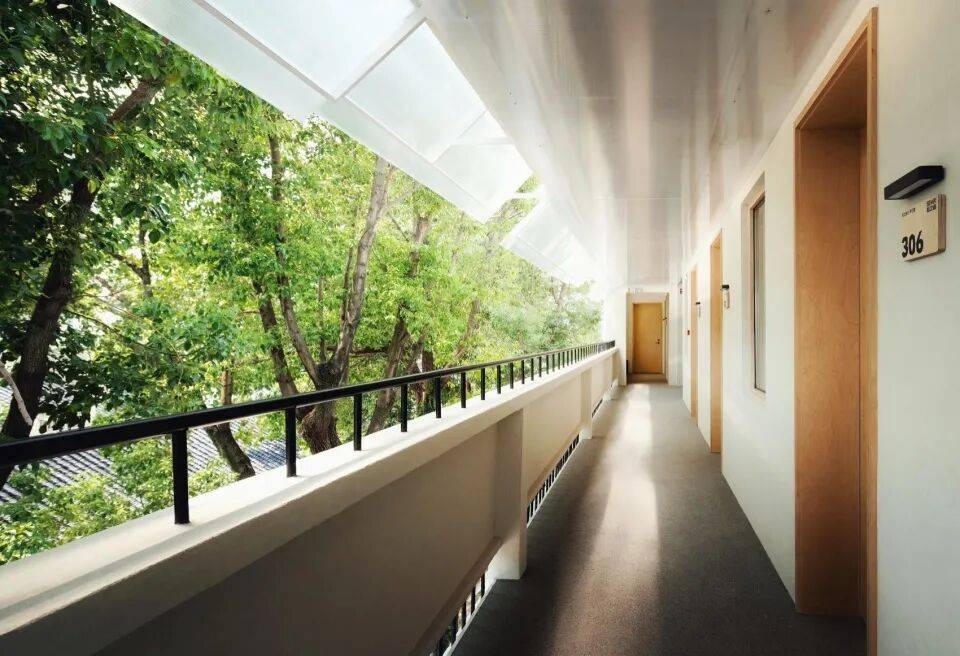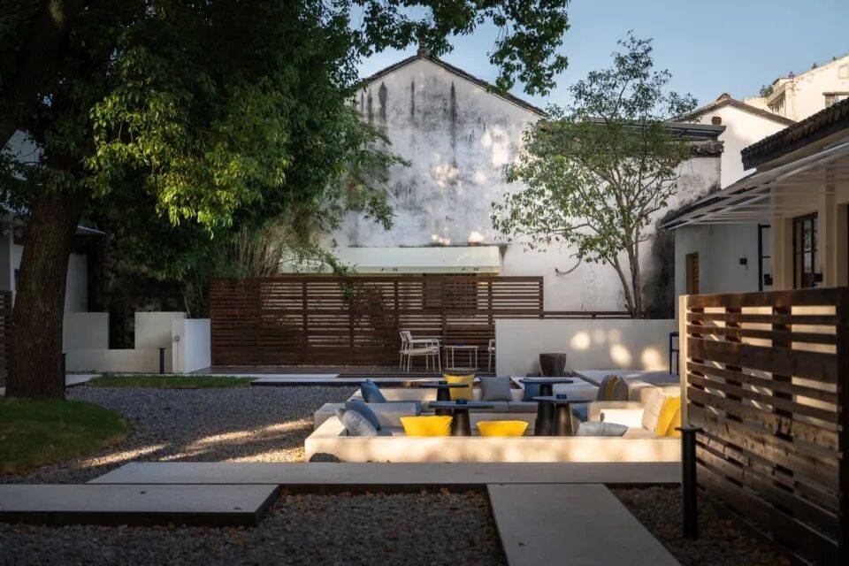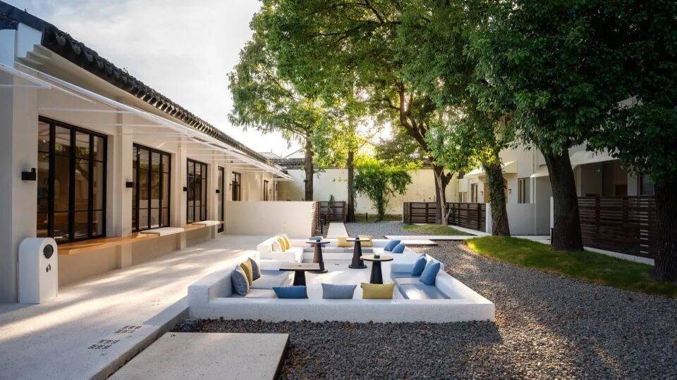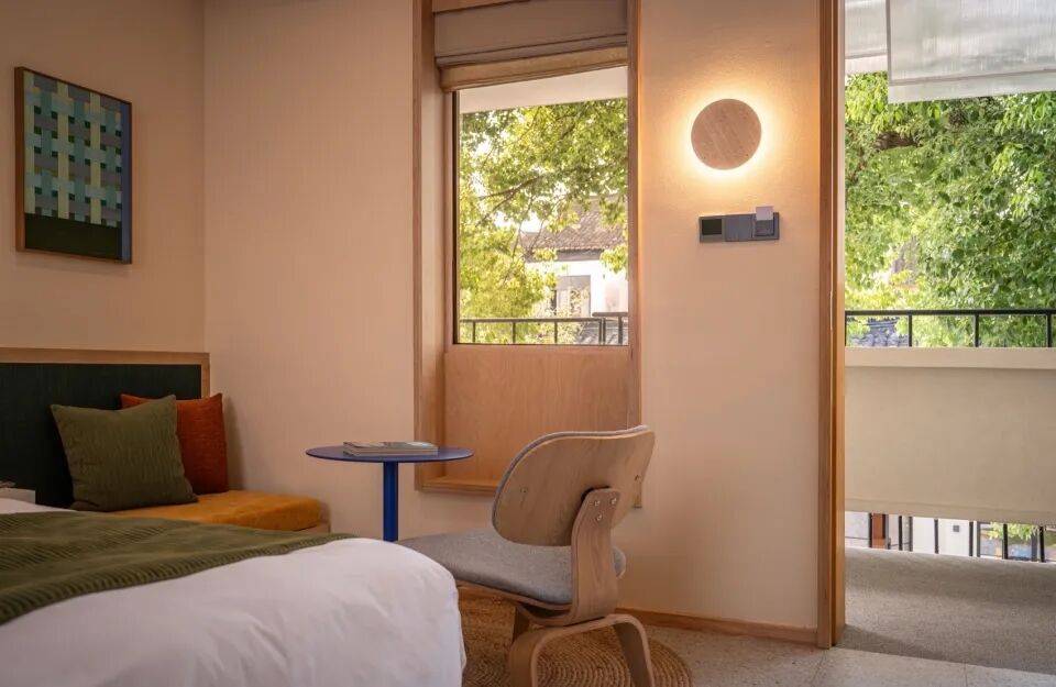 外部街区是传统且喧嚣的环境,进入到公区会有一种熟悉的陌生感,修复的木屋顶和雕花窗还是传统苏式,家具和陈设则是鲜明的当代感,一种好奇心被激发。通过大厅的转折进入到庭院,自然的树影纯净的庭院让人瞬间安静下来,想慢慢的在庭院里多呆一会。步入房间,鲜亮的色彩又让人激动起来,激发出想去探索周边的欲望。