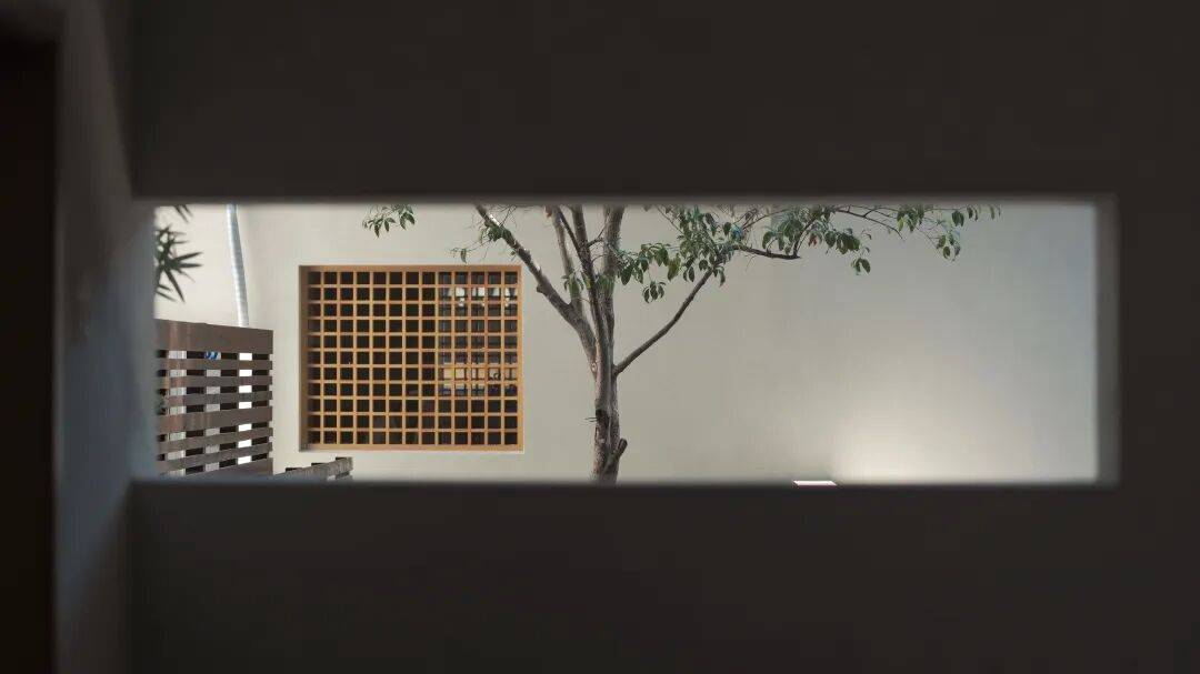大厅设置了不同尺度的取景窗,木格栅的透景门窗,半坐取景的条窗,北向打开的折叠窗等等,只为了庭院的树影婆娑可以融进室内共舞。