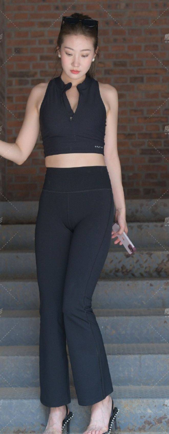 露脐背心/吊带:短款设计刚好卡在腰线以上,露出一小节紧致腰腹,若隐若现的马甲线与紧身裤的高腰形成“呼应”,既保留了性感的露肤感,又不会过于夸张;白色、黑色等基础色的背心,搭配浅绿、牛仔蓝等清新或经典裤色,平衡了“亮眼”与“简约”,让妩媚更显高级。