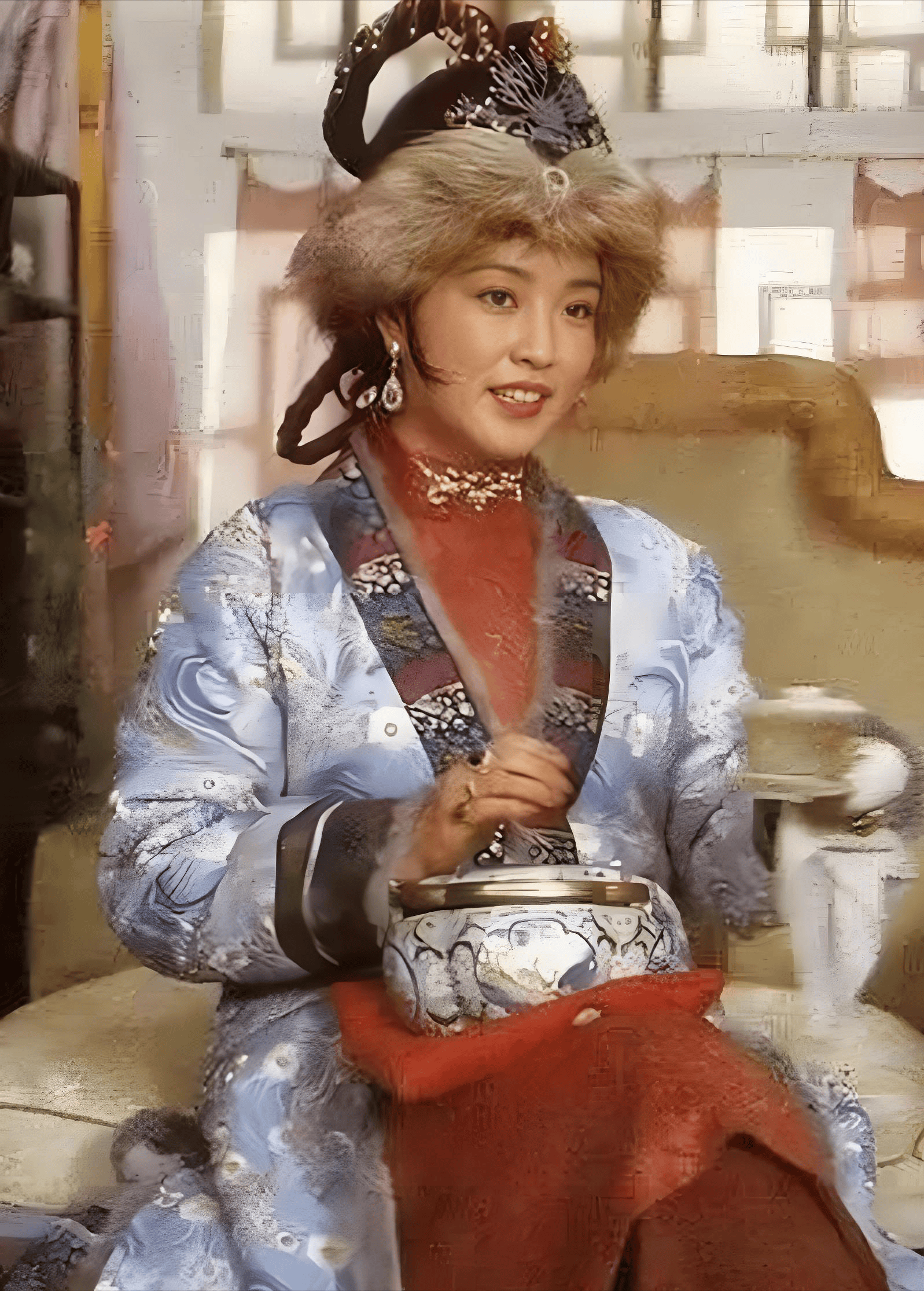 4. 精致配饰:昭君套与勒子的组合,完成了头部的完整造型,细节处见真章。二、 借鉴古今:将“凤姐美学”融入现代衣橱