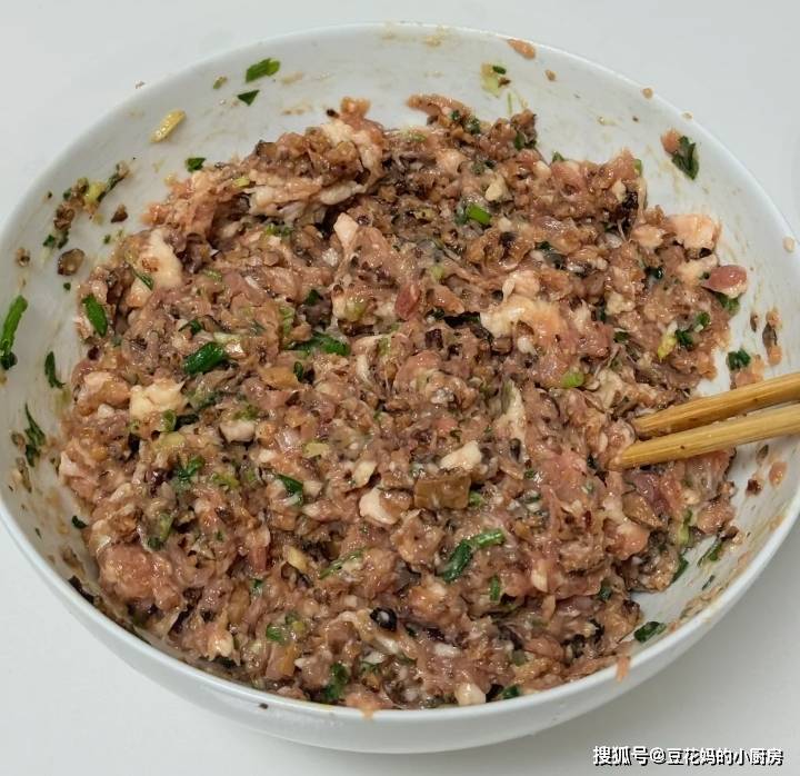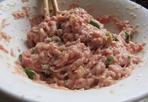 拌肉馅也是门技术活,大家别以为只是把肉剁碎,然后放点调料拌匀就好了,其实这是有讲究的,比如先放水还是先放油?这两者的先后顺序是关系肉馅是否嫩滑的关键所在,那么正确的应该是先放水再放油,顺序一定不能弄错了,我之前一直弄错,所以拌好的肉馅不嫩滑。