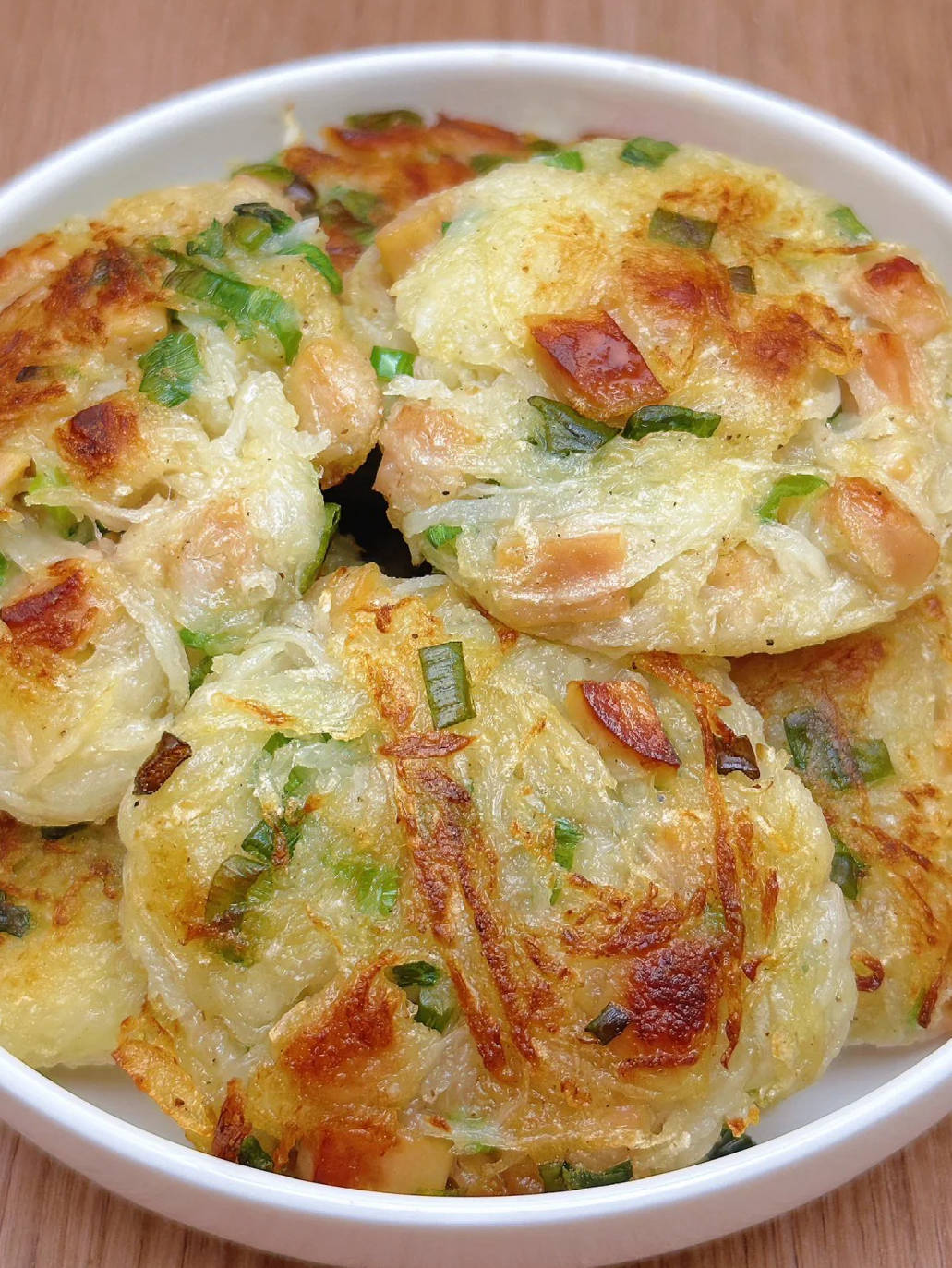 特点:外酥里嫩,萝卜的清甜混着火腿的咸香,适合当早餐或配粥。