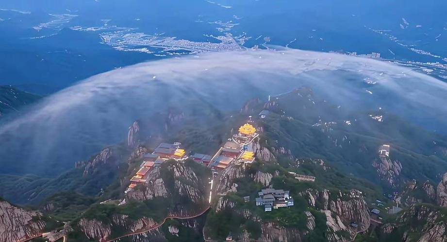 - 风力风向:特定风力(3-4米/秒)和风向将雾气水平推送,在山顶与山腰不同方向的气流层作用下,形成无形的“风切层”,将云雾切割、限制成中空环形,最终包裹住金殿。