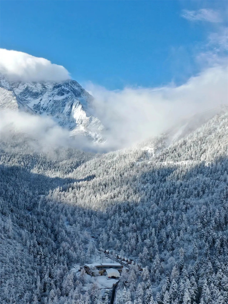 3. 冰川奇观:达古冰川是中国纬度最北的海洋性山地冰川,拥有13条现代冰川首尾相接。可近距离观赏冰舌、冰斗等冰川地貌,在阳光下闪烁着蓝宝石般的光泽。