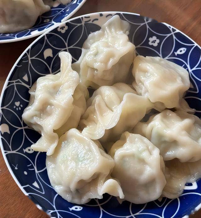 饺子皮擀得薄如蝉翼,包裹着满满的馅料,捏成一个个饱满的“元宝”。煮熟后的鲅鱼饺子,个头大得惊人,一个就能占满汤勺。