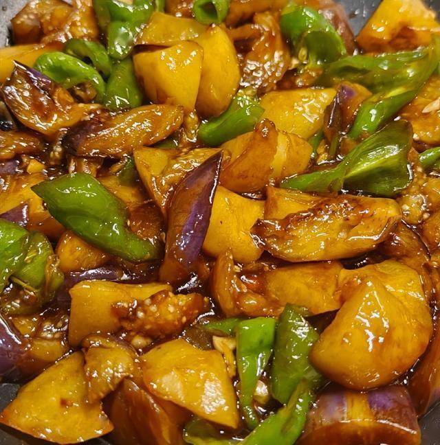-   “实在”体现:成菜后,土豆软糯绵密,茄子油润入味且吸饱汤汁,青椒则保留了一丝清脆爽口。三者在浓郁芡汁的包裹下融为一体,味道醇厚下饭。这道菜充分体现了东北菜“善用油、善用芡”的特点,份量足、油水足、价格便宜,在餐桌上常常扮演着不可或缺的角色。