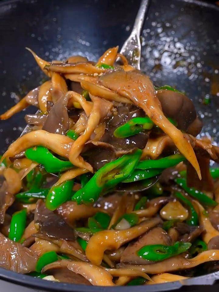 平菇的清香与小米辣的辣味相结合,再加上葱蒜的提香,简单翻炒后即可出锅,是一道非常受欢迎的素菜。