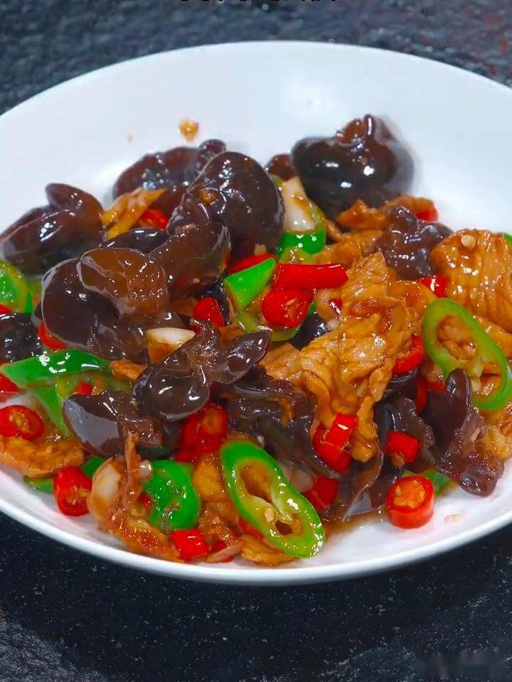 木耳炒肉是一道经典的家常菜,口感脆嫩,肉片鲜香。准备好木耳和牛肉,牛肉炒至变色后,加入木耳和青红椒块,翻炒均匀后出锅,简单美味。
