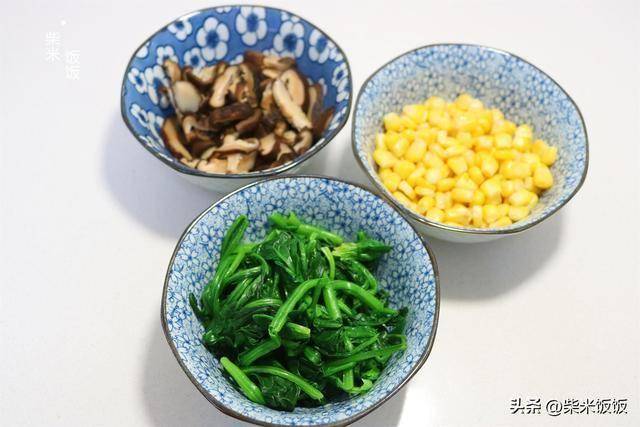 2,香菇、玉米粒、菠菜分别全部煮熟。