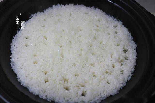 5,10分钟后大米就熟了,用筷子在米饭表面扎孔方便上气。