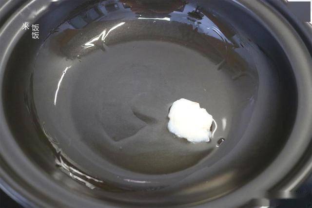 3,砂锅烧热,放一块猪油涂抹均匀。没有猪油就换其它食用油。