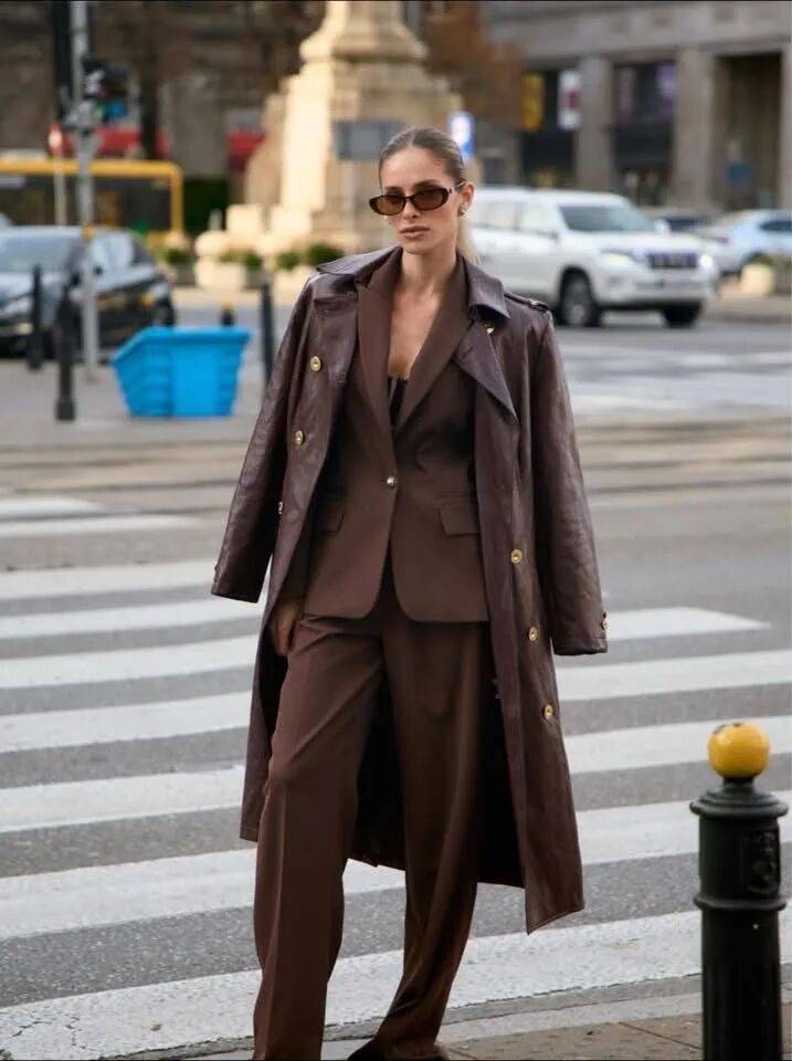 棕+橙:10%亮橙包袋或内搭点缀,瞬间点亮造型。