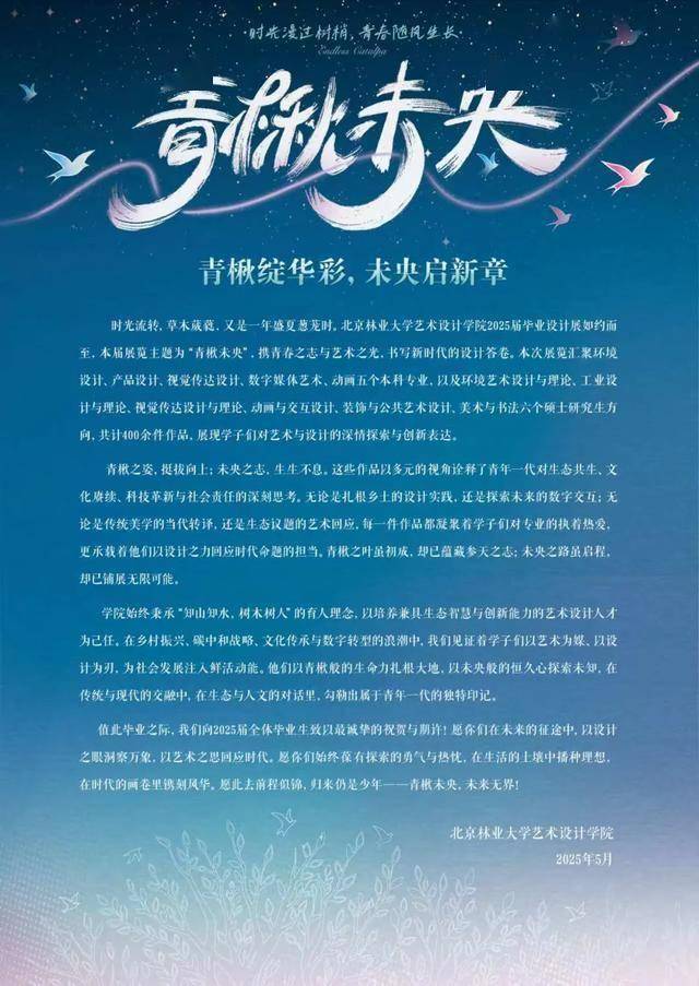 北京林业大学艺术设计学院的此次毕业展,既是对研究生阶段学习成果的总结,更是一次关于“我们为何设计、为谁设计、如何与自然共处”的深层叩问。它以设计为媒介,将“知山知水”的认知自觉与“树木树人”的教育理想融入每一处空间细节,在图纸、模型与文字背后,跃动着一代年轻设计师对绿水青山的敬畏之心与建设之志。这不仅是一场视觉盛宴,更是一场生态文明时代的灵魂共振——在这里,山不再遥远,水得以清澈,树正在生长,人亦在成长。