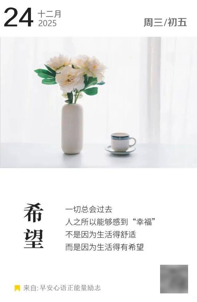 您引用的这句话——“一切总会过去,人之所以能够感到‘幸福’,不是因为生活得舒适,而是因为生活得有希望”——深刻而富有哲理,尤其在今天这样一个特殊的日子里(2025年12月24日,平安夜),它似乎更能引发人们对生活意义和内心状态的思考。