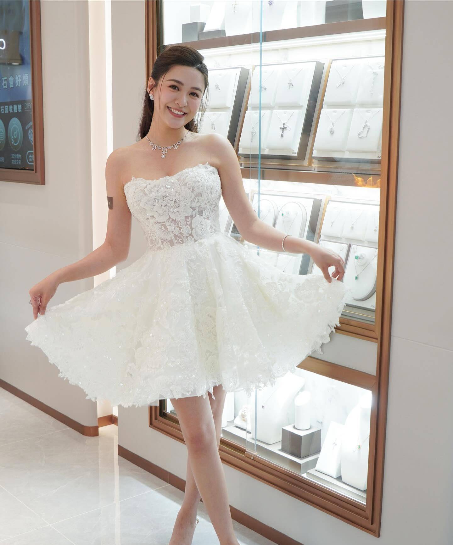 最近看到前TVB演员江嘉敏参加珠宝店开幕式的照片,确实让人眼前一亮。她选了件简约的白色无肩带礼服,整个人显得特别精神。和以前在电视剧里看到的样子相比,现在的她确实变化挺明显的。