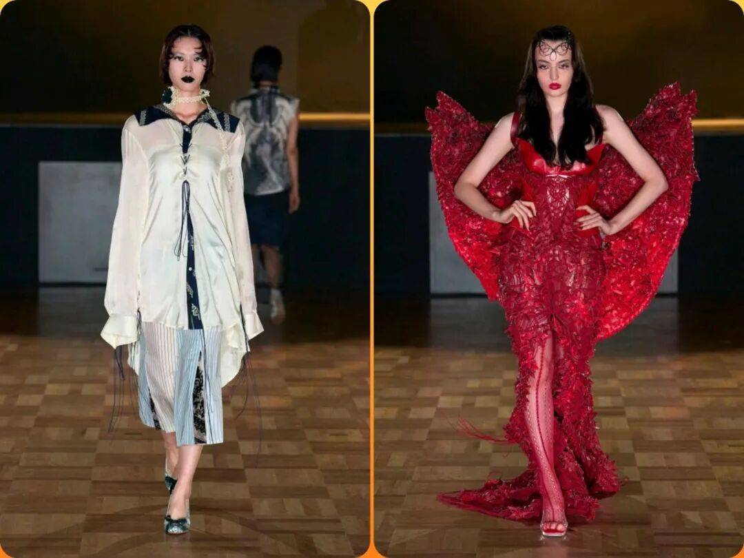 将《山海经》神兽转化为可穿戴的科技装甲——如九尾狐的尾部以光纤与钛合金编织,随步态流光变幻;帝江的混沌之躯通过3D打印蜂窝结构层叠,模拟“无面六足”的生物形态。
