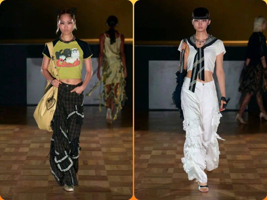 服装在超长袖子、立体造型、拼接装饰等这些设计的结合,则让这些服装在面料的材质纹理上也有着更多细节的潮范儿。