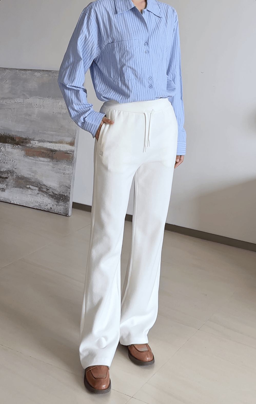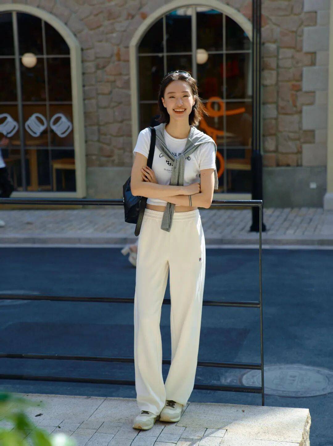 就这一个小变化,就能让腿部线条从上而下自然延展,带来「腿从腰起」的视觉效果,不仅显腿长,裤腿平直规整的轮廓,也很显腿直。对于 O 型腿或者 X 型腿来说,是非常理想的选择。