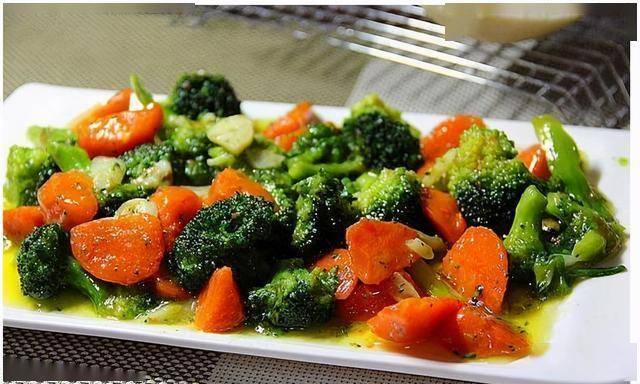 2、锅内放适量水,加少许盐,烧开后放入胡萝卜汆煮至筷子能轻松插透,大约需要6、7分钟,然后倒入西兰花,继续汆煮2、3分钟捞出。