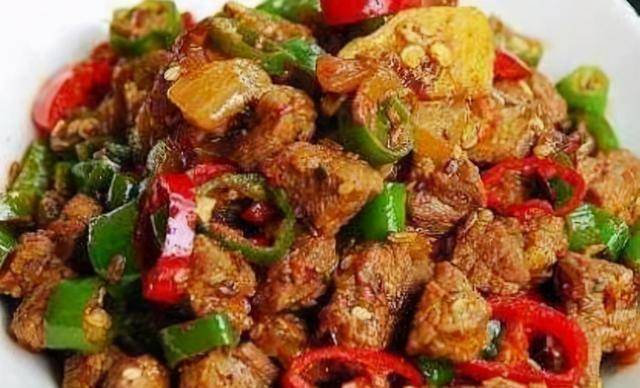 2. 重口组合:川香土豆烧排骨+辣尖椒炒牛肉片+红烧茄子(下饭神器);