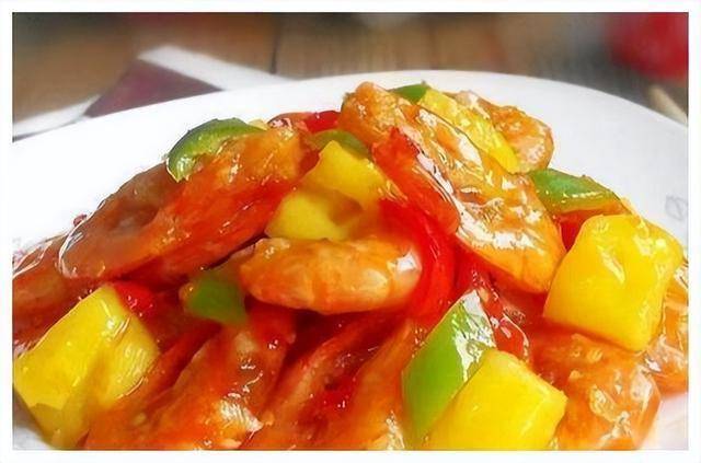6. 加入虾、菠萝和青红椒炒匀就可以了。