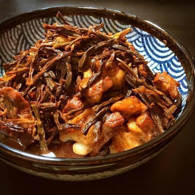 6.再放入处理好的干豆角,翻匀,加适量盐调味,继续炖约20分钟后,大火收干汁即可