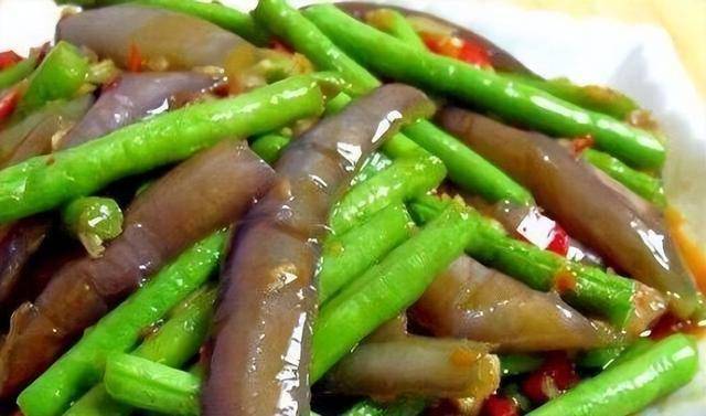 1、豆角不要切,用手掰成段,稍微长一点。用盐腌渍(入味),茄子切条,也用盐腌渍十分钟,淘洗干净,挤掉水分。
