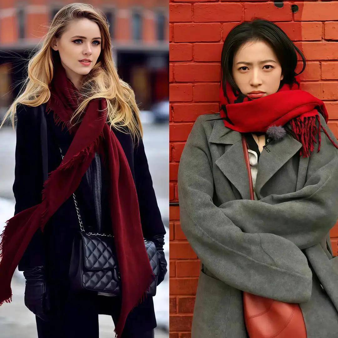 大面积红色(如大衣):用中性色系内搭(如黑色、白色)减弱视觉冲击,避免显得刺眼;