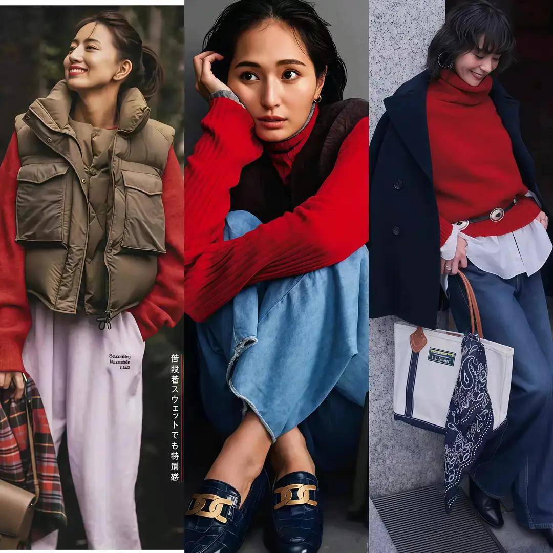 以基础款为主,避免复杂设计(如过多印花、蕾丝),基础款的红色单品(如直筒大衣、圆领毛衣、A版半裙)更容易搭配,且不易过时。