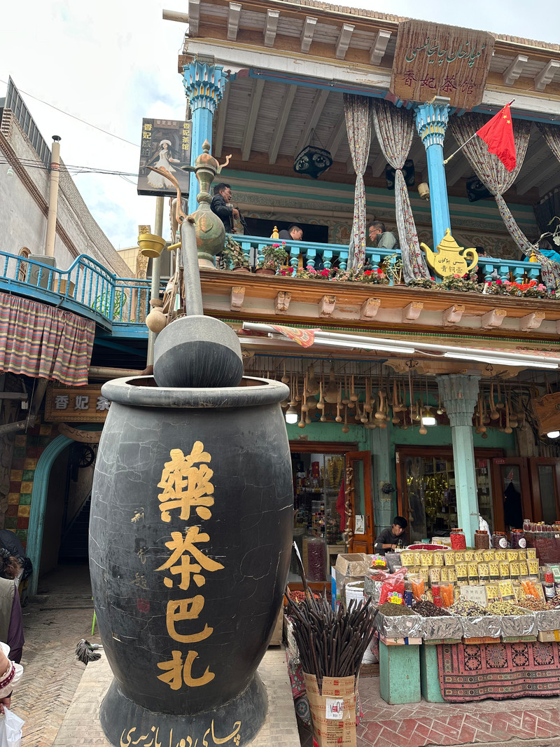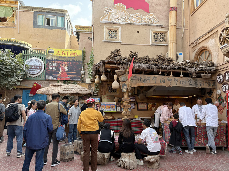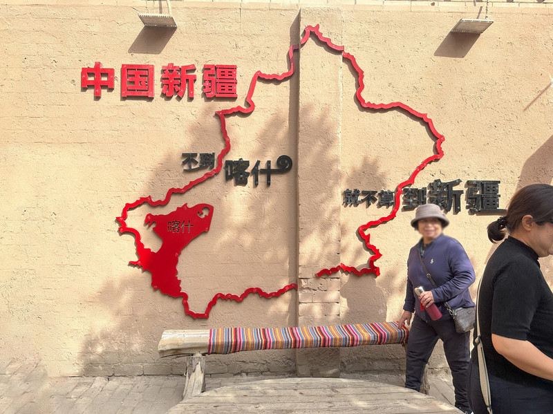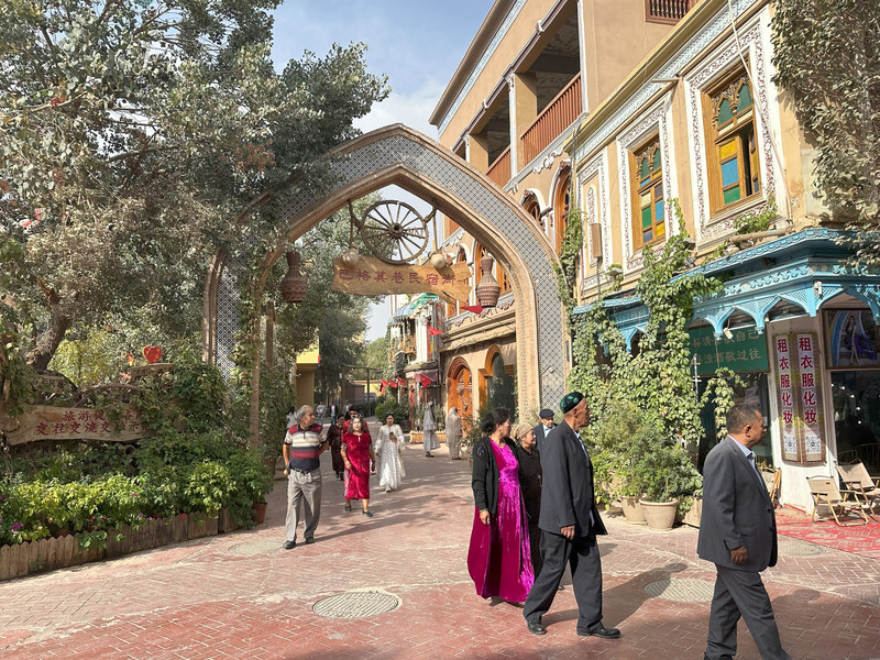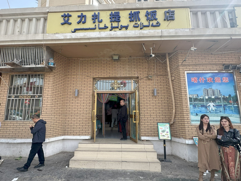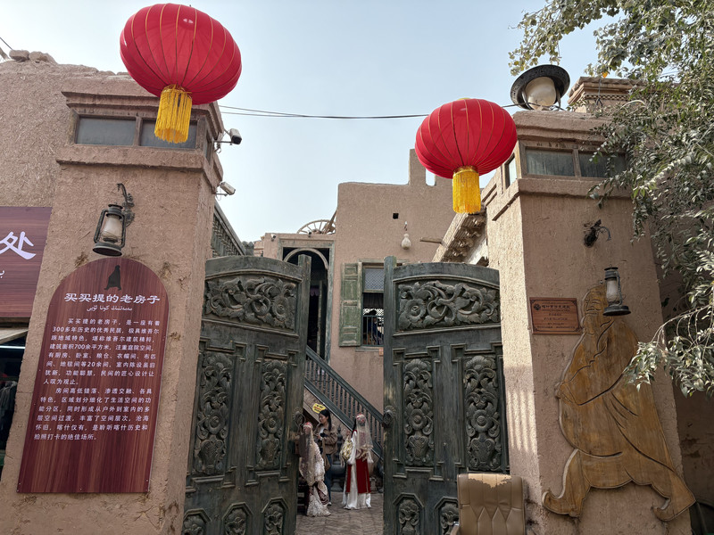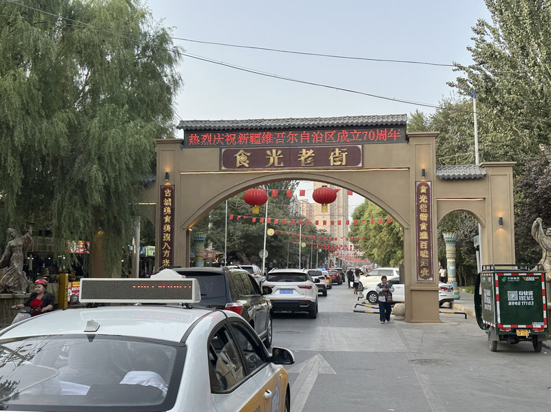 入城后,我们在古城街巷流连,西域古风直扑眼帘。看到一古城便民警务站正有人排队办理边防证(在喀什许多地方游览要查看边防证),我们已在南京出发前办理了新疆全境的边防证,一问,说不行,要注明具体的地方,我们又重新办了一下。上午玩了城东地区,去了巴依老爷家,在一家餐馆喝了羊肉汤,再去吃手抓饭。饭后回酒店休息。
