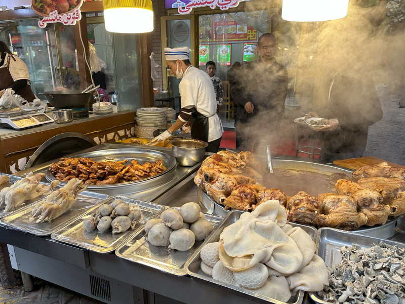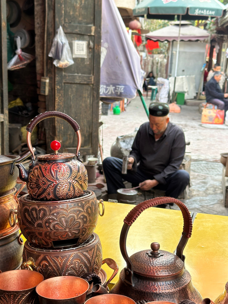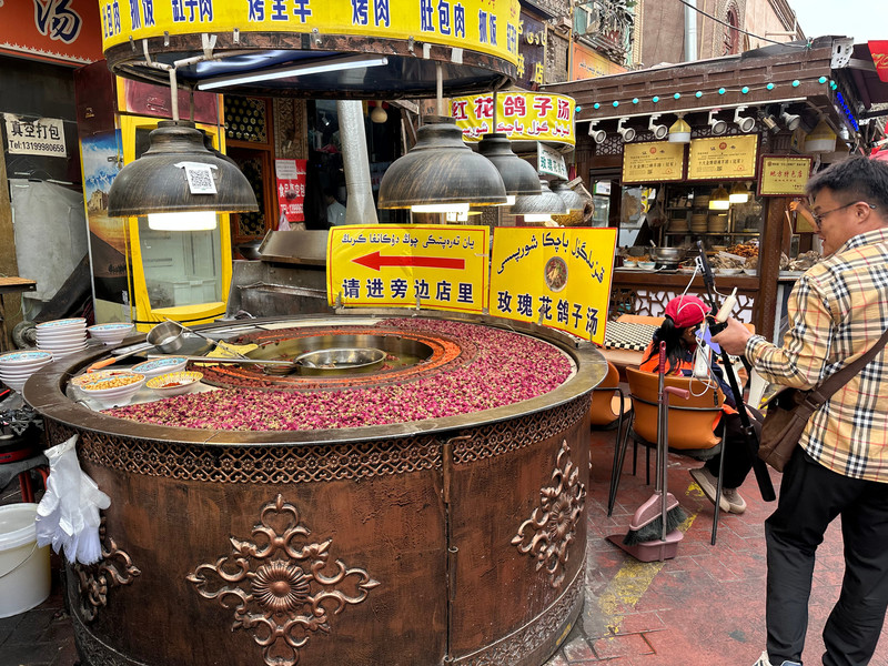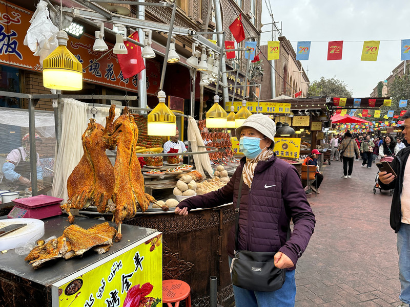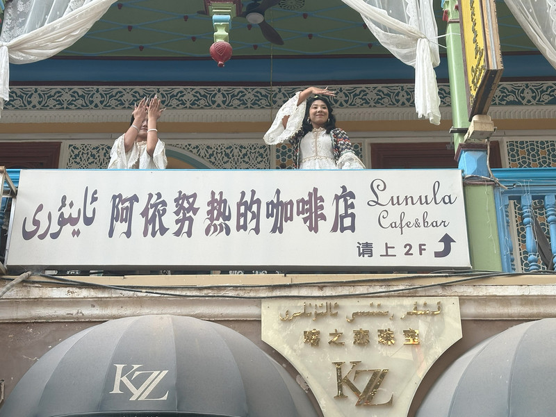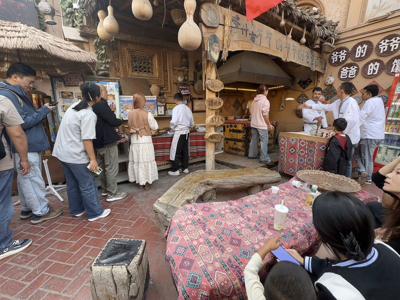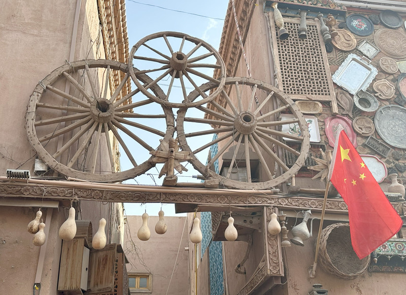 入城后,我们在古城街巷流连,西域古风直扑眼帘。看到一古城便民警务站正有人排队办理边防证(在喀什许多地方游览要查看边防证),我们已在南京出发前办理了新疆全境的边防证,一问,说不行,要注明具体的地方,我们又重新办了一下。上午玩了城东地区,去了巴依老爷家,在一家餐馆喝了羊肉汤,再去吃手抓饭。饭后回酒店休息。