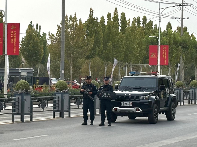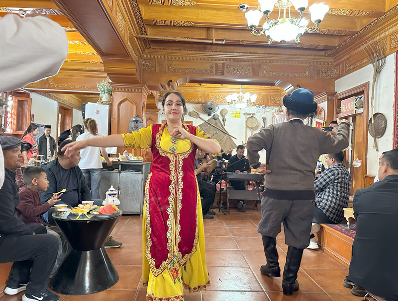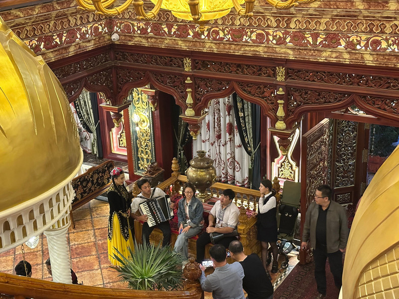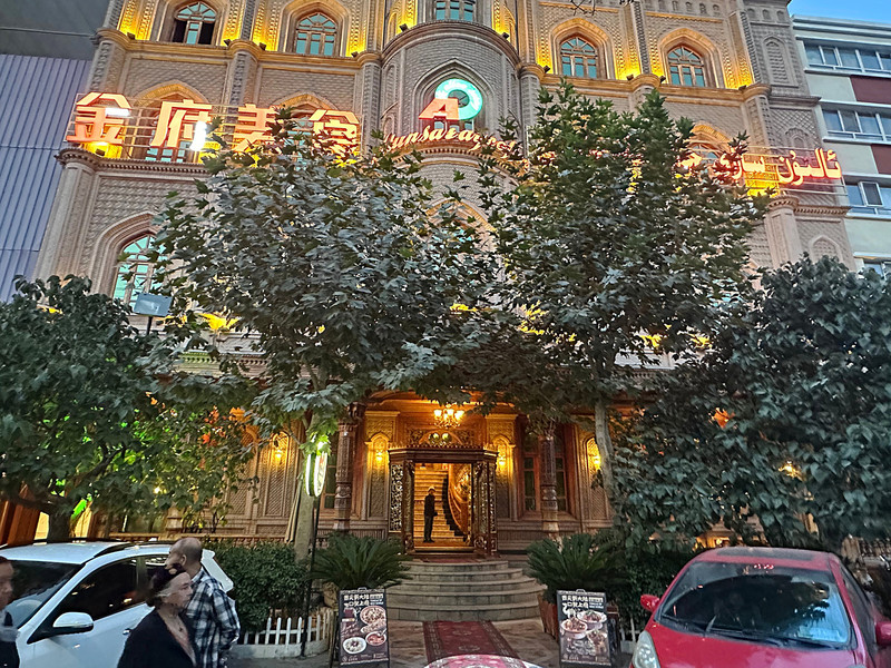 晚8点驾车去网红餐馆金府美食,这家餐馆富丽堂皇,菜品较有特色,也算中秋小庆一下。金府有歌舞表演,我们点了烤鸽子、小羊排、查码故过油肉、干煸仔鸡、烤肉等菜肴。餐后找加油站加油,新疆加油须刷脸查身份证、后备箱,加油时工作人员一手持油枪,一手核对身份证,再给加油。