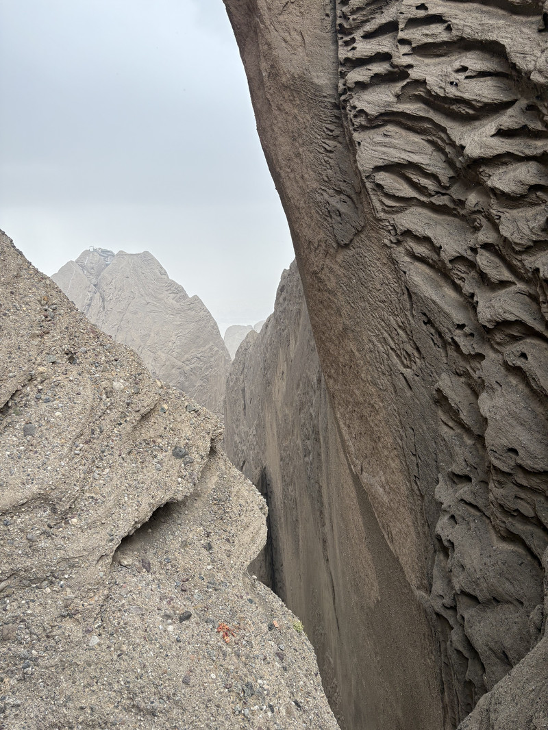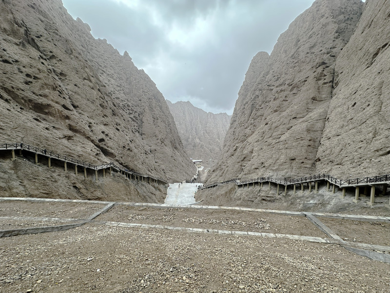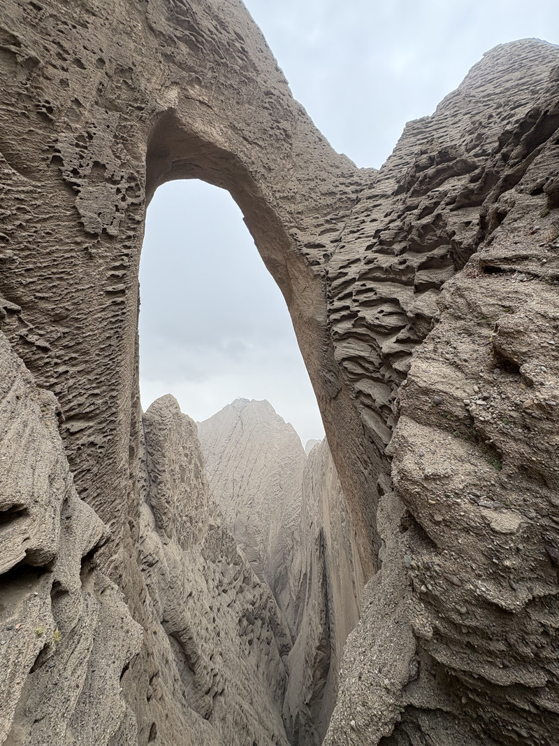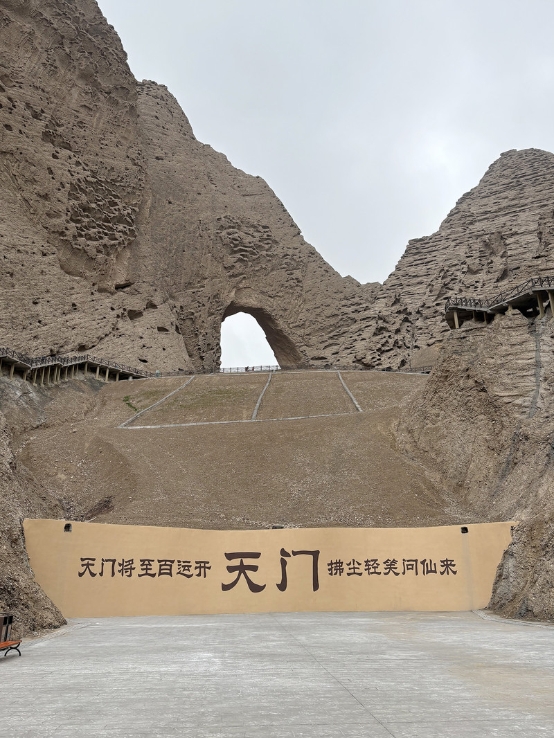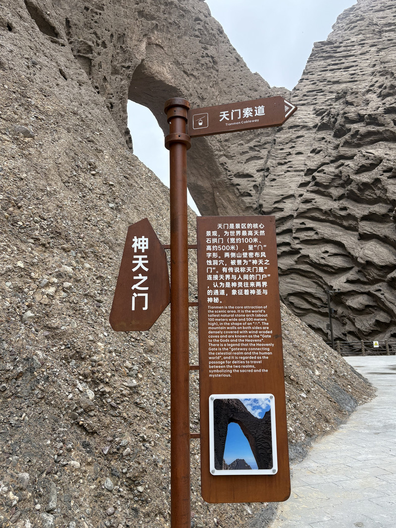 “314国道”这条线的起步比较纠结。有话说:“不到喀什,就不算到新疆。”新疆美,喀什是美中之美。喀什的旅游线很多,很难一次玩完。本着先近后远、远近结合的想法,红其拉普口岸肯定要去的,这最远,放到稍后。先去的地方三选一(1天时间):阿图什天门山、中国西极第一乡和沙车古城。这3个景点在3个不同方向,天门山在喀什西北边,西极在喀什西边,沙车在喀什东南方向。路程也不一样,以喀什为轴心,天门山来回140公里,西极来回500公里,沙车400公里。纠结了一下,我们决定去天门山。因有友人推荐,且有挑战性,是AI说的。临时做天门山的功课,AI提示:车辆只能开到天门山峡谷口的停车场,剩余路程需要徒步。从停车场到天门脚下,单程徒步距离约3-4公里,需要1.5 - 2小时;全程是没有铺装的原始山路,需要反复在干涸的河床、碎石坡和乱石堆中行走,坡度起伏较大;徒步鞋绝对必须!如有手杖,建议带上,能大大节省体力并保持平衡。早晨从喀什出发,约9-10点抵达天门景区停车场;徒步至中午时分抵达天门脚下;下午约2-3点开始原路返回,4-5点抵达停车场。这就是说,艰苦的天门山旅行需要整整一天。