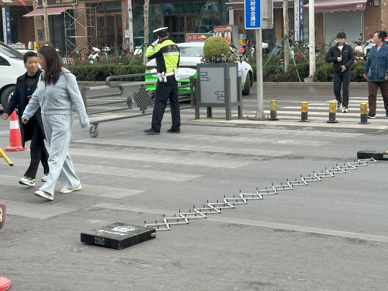 6日早晨10点,我们打车去古城,一刻钟后到了通往古城的路口,封路了,地上放置路钉,有警察警戒,因为10点半要举行开城仪式。我们步行5分钟来到将要举行开城仪式的古城东门口,这里已经人山人海。