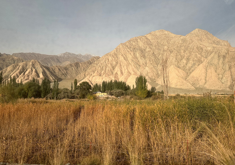 我站在天门面前,天门那边是昆仑山脉,这边是天山山脉,抬头仰望那数百米高的巨门,会觉得人很渺小,但并不影响你有一览众山小的心情。天门山游客不多,属小众景点,见到当地游客,说喀什人都很少来过。难怪AI也会信息不全,看到景区正在修建滑雪场,还会有其他一些景点设置,天门山景区前景看好。在山上时,山顶下了小雪,下山天又放晴。我觉得,如果碰上好天气,下午3、4点钟从喀什市区出发,先看景点再看落日,时间也是够的。