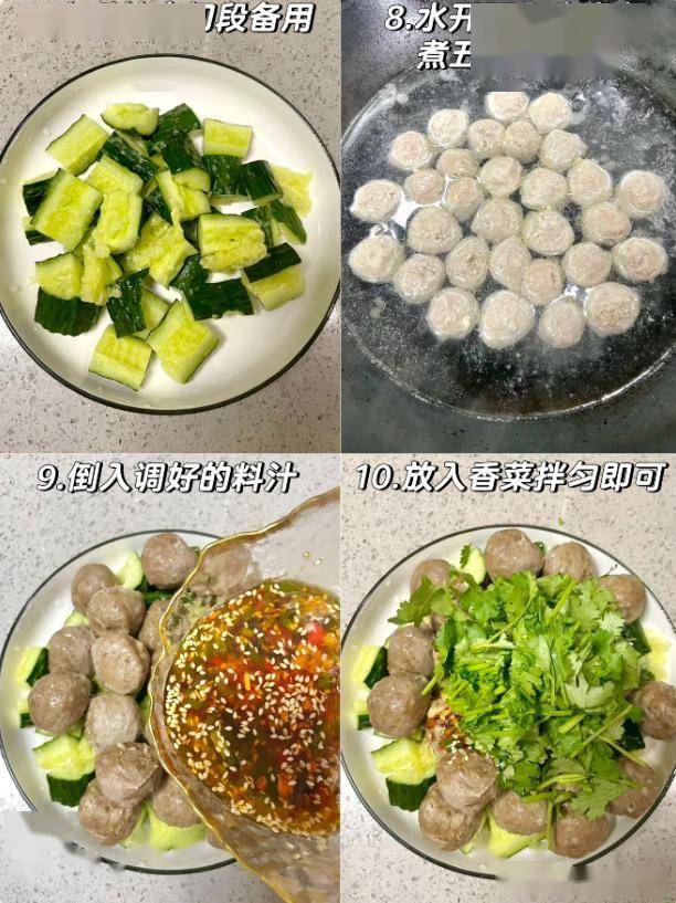 减脂版:用低脂牛肉丸,搭配大量黄瓜丝,料汁减半油量