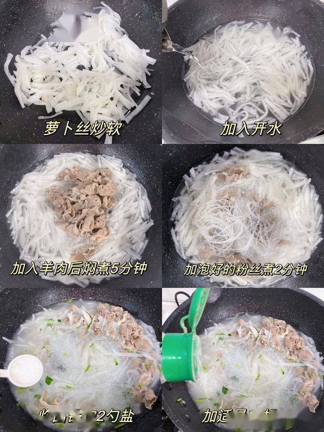 主料:羊肉片、白萝卜丝、粉丝(粉条)